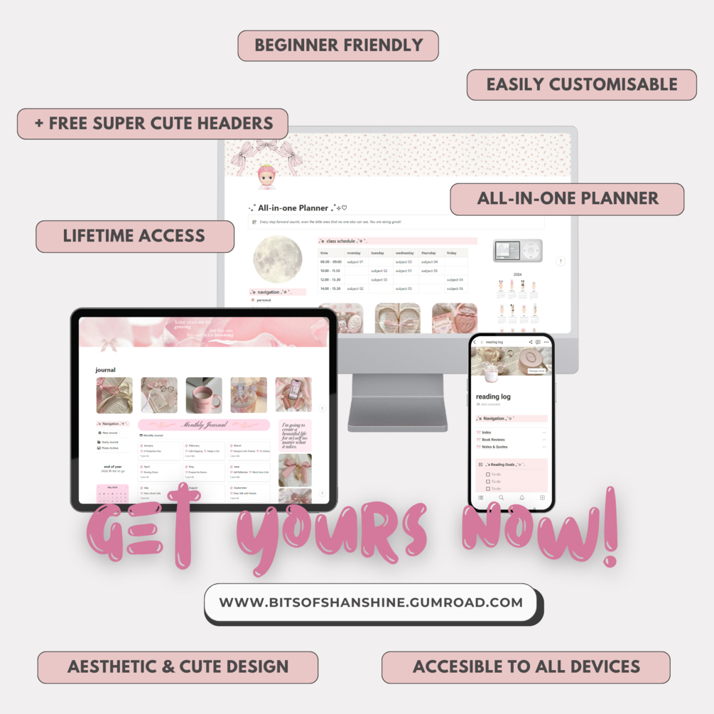 Happy to announce that Coquette All-in-one Life Planner Notion Template is out now on Gumroad & Ko-fi! 🎉 Designed for the individual who values both functionality and aesthetics, this comprehensive template is your passport to a more stylish, organized, and fulfilling life.