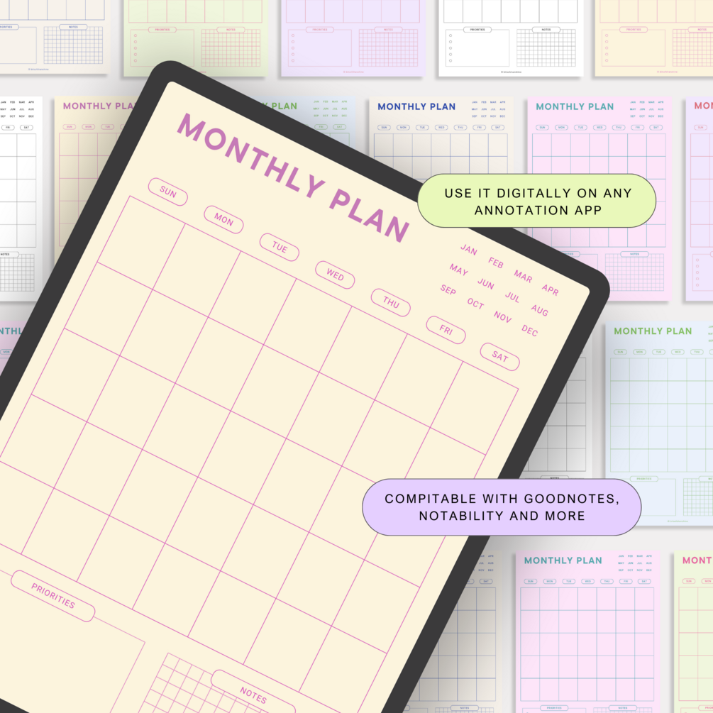 The minimalist & soft pastel colors Monthly Digital Planner is here to make you more organized in your daily routine. Whether you're managing work projects, organizing personal goals, or juggling a busy lifestyle, our Montly Digital Planner is your go-to solution for staying organized, focused, and on track every month.