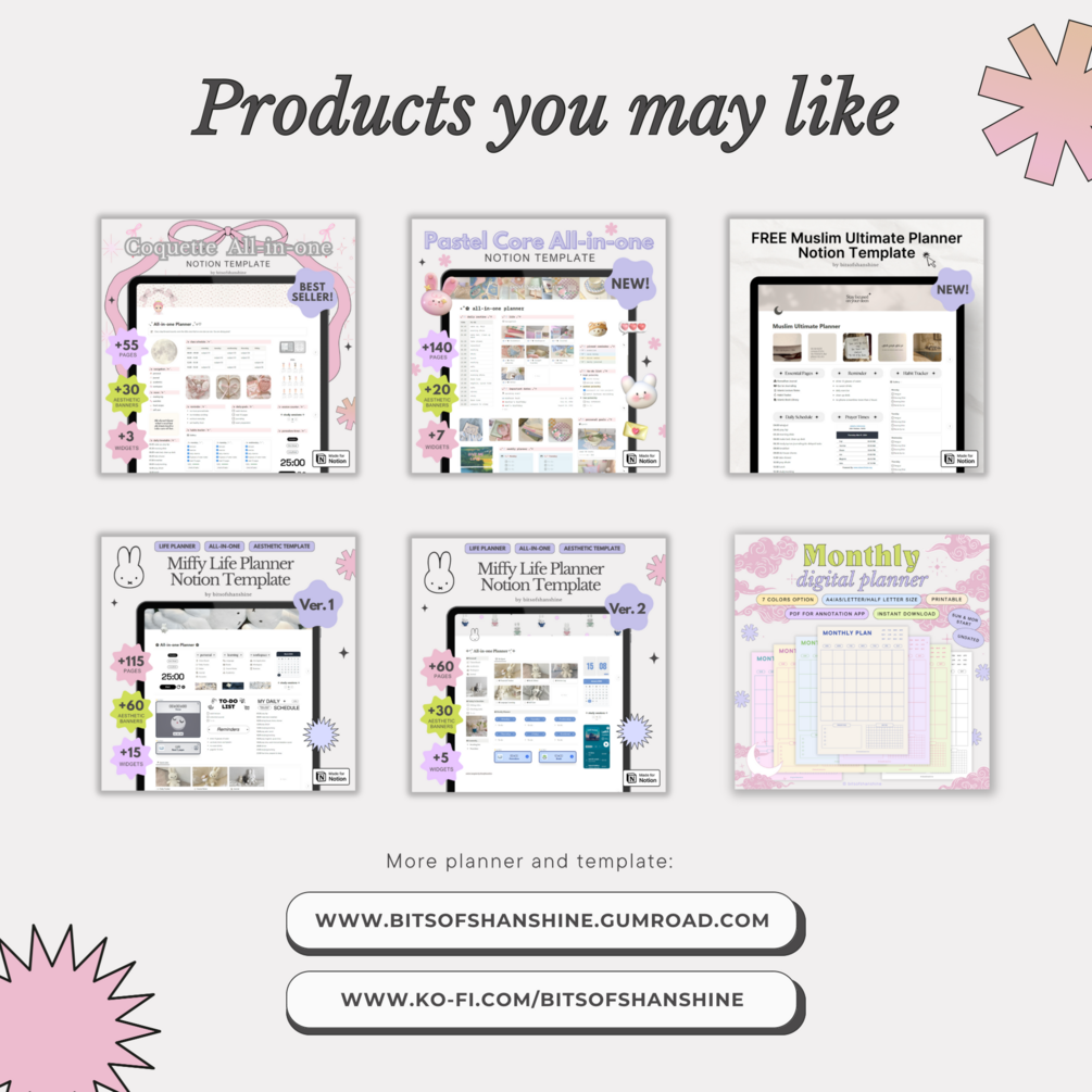 I usually post and promote my own work on Twitter & Pinterest! Here is the link if you want to keep update with my Notion template creation journey: