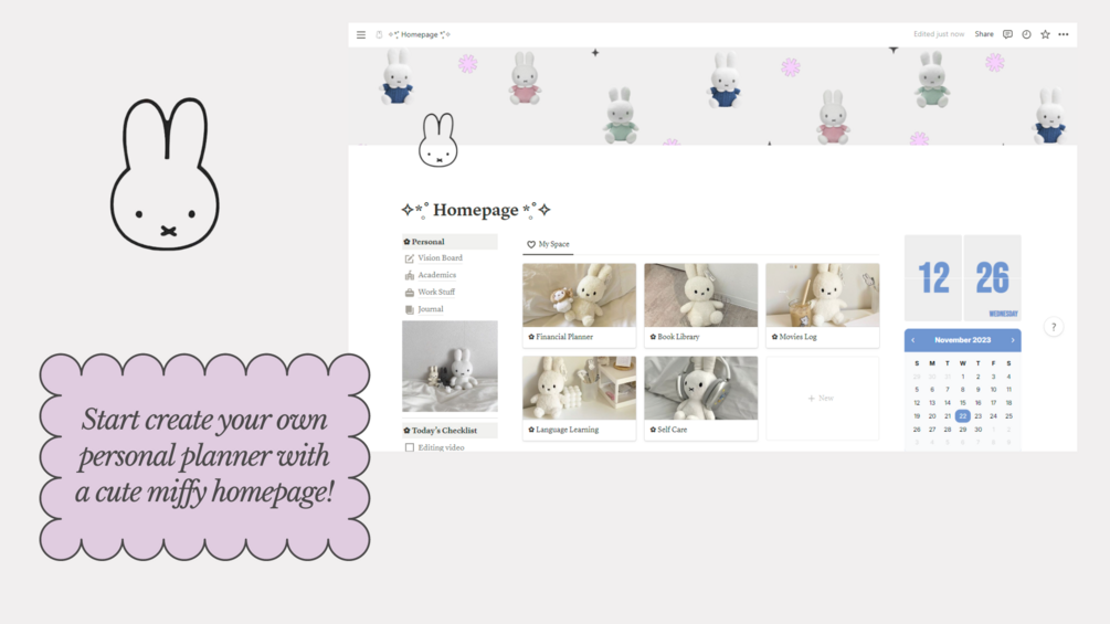 Miffy Homepage Notion Template Ver. 2 (Homepage only)