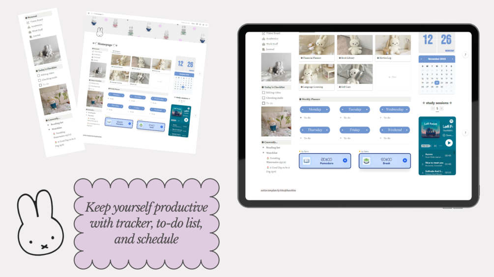 Hi everyone! I am back with another Notion template. This time I made another version of Miffy Notion template. The second version of Miffy template is more simple yet still able to organize all of your productive stuffs!
