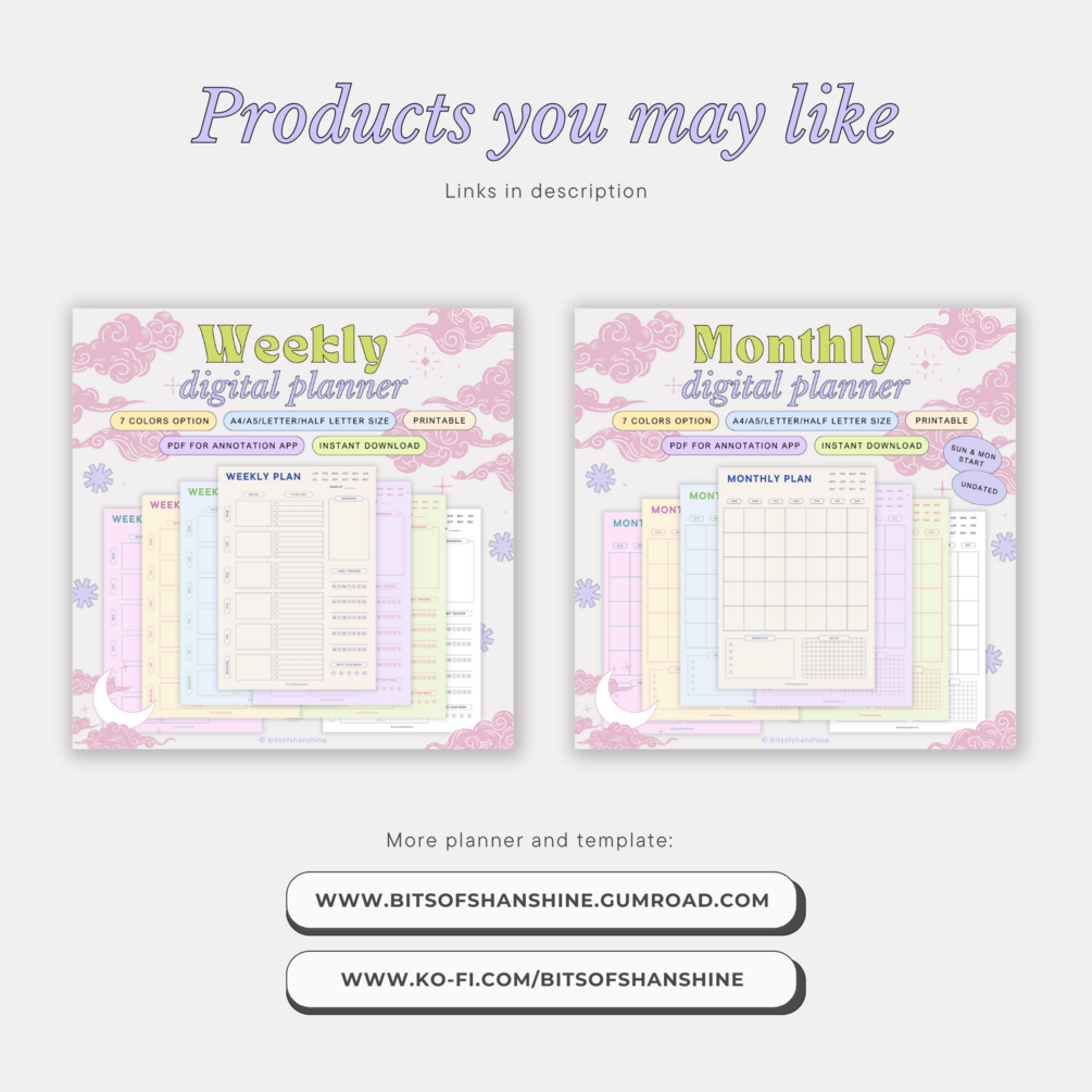 Weekly Digital Planner: https://bitsofshanshine.gumroad.com/l/ekuui