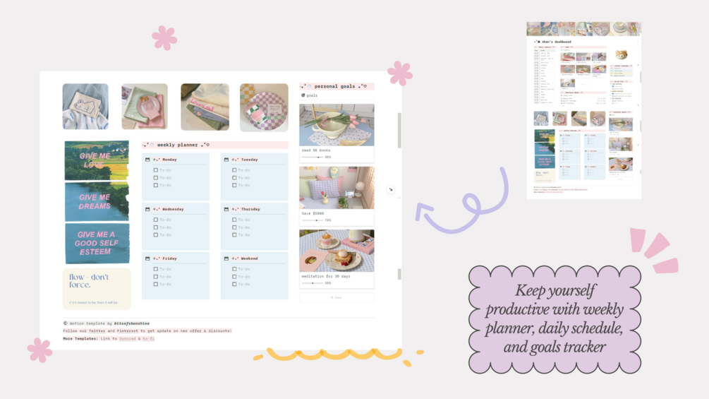 I usually post and promote my own work on Twitter & Pinterest! Here is the link if you want to keep update with my Notion template creation journey: